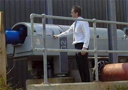 В Йоркшире (Англия) [4] ежедневно на очистные сооружения поступает около 1 млн. м3 сточных вод, образуется 1 400 м3 осадка (влажность около 96 %). Для обезвоживания использовались фильтр-прессы. Осадок обезвоживался до влажности 82 % и выше. Однако производительность фильтр-прессов оказалась существенно ниже номинальной и, как следствие, необезвоженный осадок постоянно накапливался. После серии поломок фильтр-прессов в 2005 году, количество накопленного необезвоженного осадка достигло 50 000 м3. После проведенных исследований было принято решение об установке двух декантерных центрифуг Alfa Laval Aldec G2 (рис. 1).