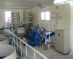 Центрифуги работают 24 часа в сутки, каждая обрабатывает в среднем 30 м3 осадка влажностью 96 % в час и производит кек влажностью 75 % (рис. 2). Таким образом, новое оборудование обезвоживает осадок до меньшей влажности и, кроме того, является менее энергоемким [4].