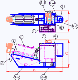 | Тип | Концентрація з.р. 2000-4000 мг/л | Концентрація з.р. 6000-35000 мг/л | Шнек | А | B | С | Встановлена потужність, кВт | Вага, кг | ||